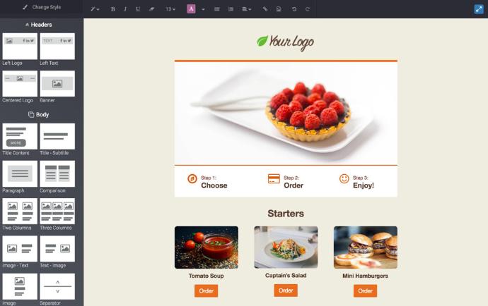 Отримайте повний контроль над вмістом та макетом електронної пошти завдяки інтуїтивно зрозумілому і простому інтерфейсу перетягування. Використовуйте заздалегідь визначені блоки, щоби створювати чисті абзаци, заклики до дії або зображення, не торкаючись жодного рядка коду.